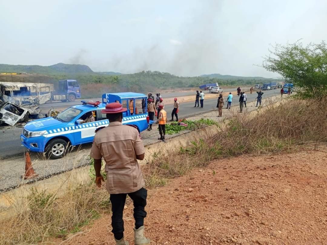 FRSC spokesperson, ACM Jonas Agwu, said the agency’s emergency rescue teams deployed to rescue the victims could not achieve desired results after three hours rescue attempts as the efforts they put into the rescue operations were unduly hindered by the fire inferno that engulfed the affected two vehicles.