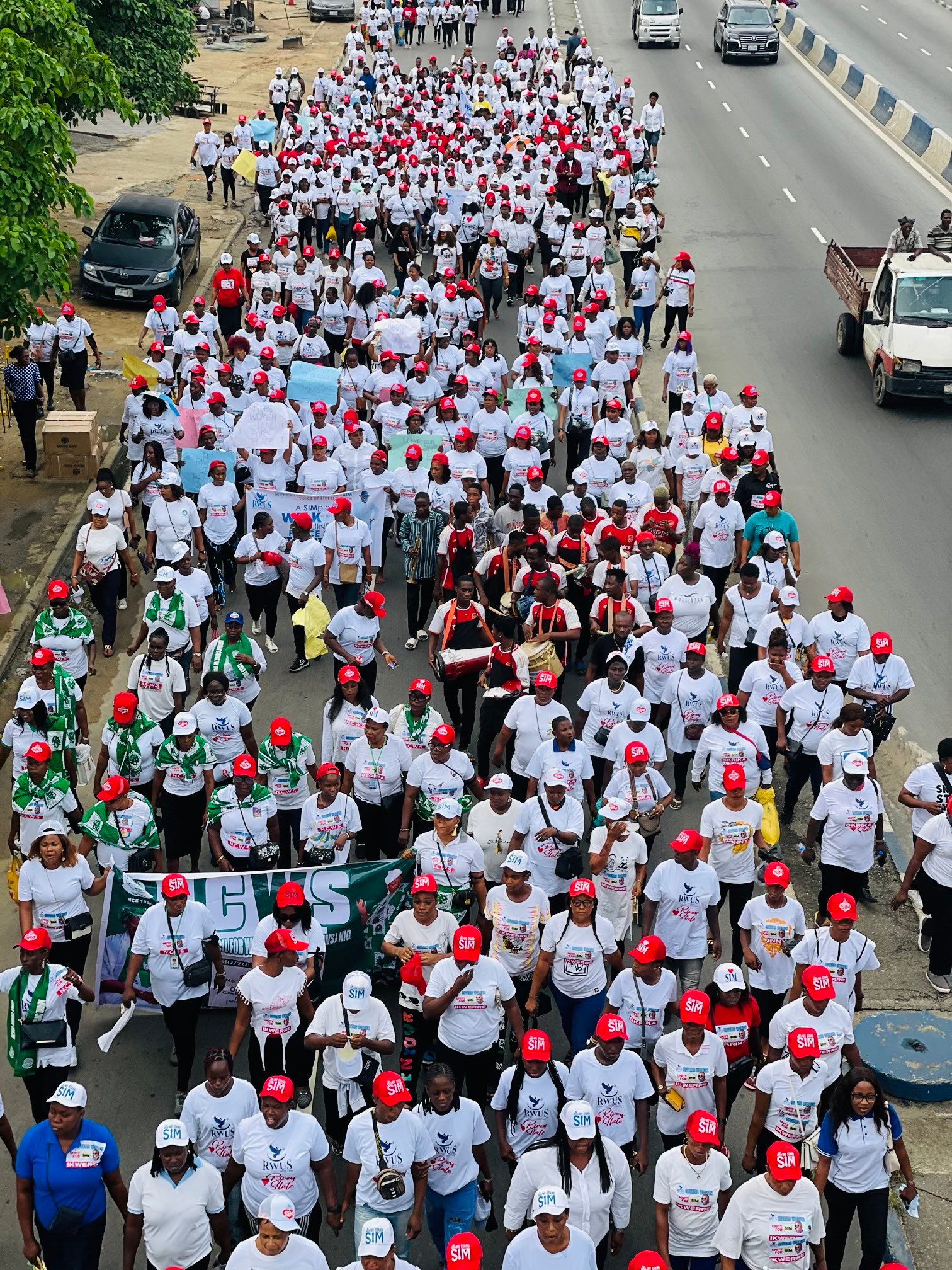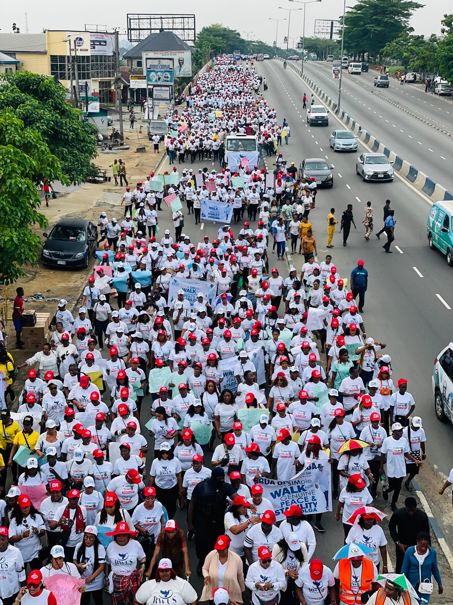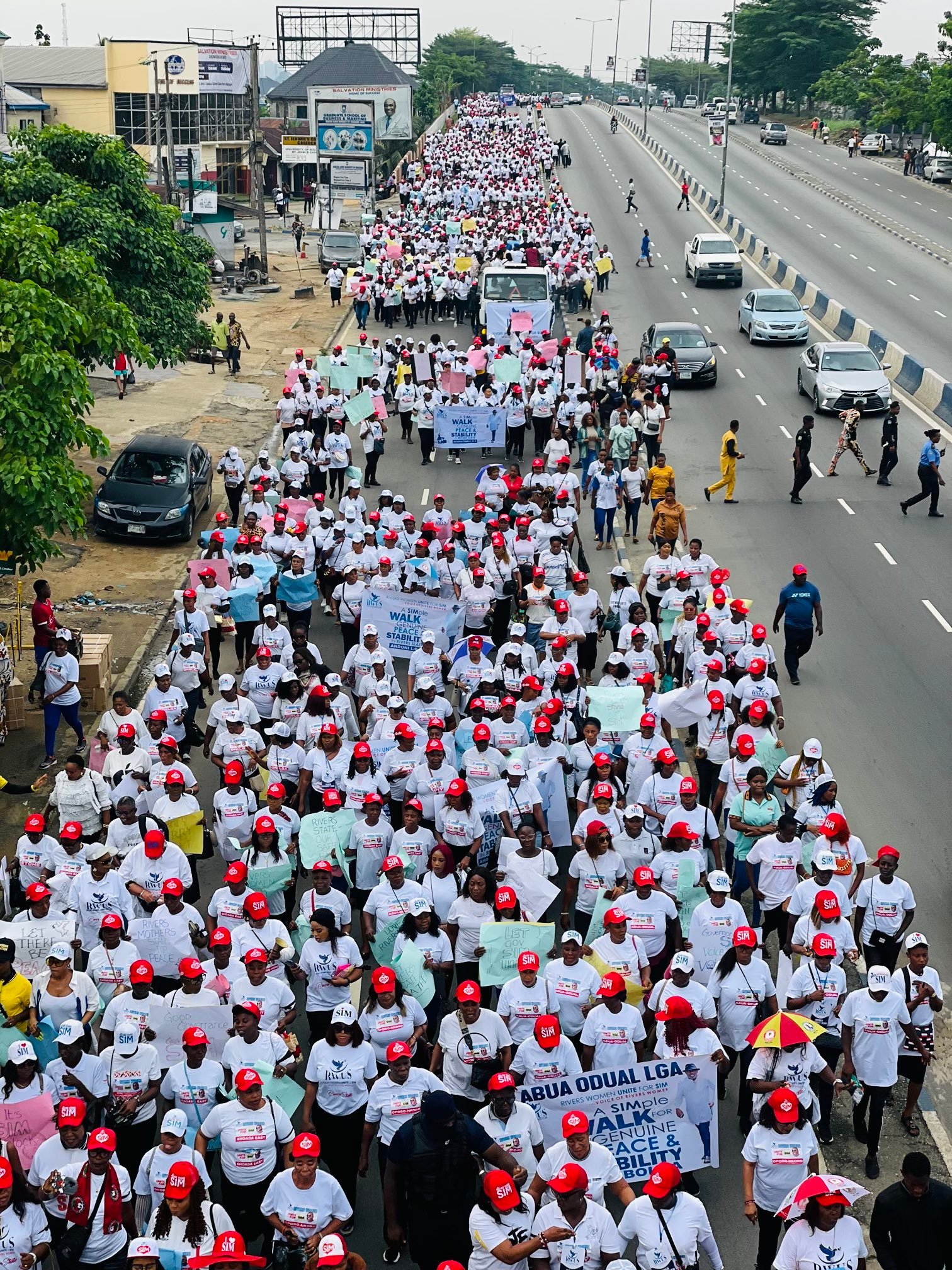 The women marched approximately 6 kilometers from the CFC Junction on Aba Road to the Port Harcourt Polo Club in New G.R.A., where they congregated to express a collective demand for peace in the state and respect for the Governor’s office.