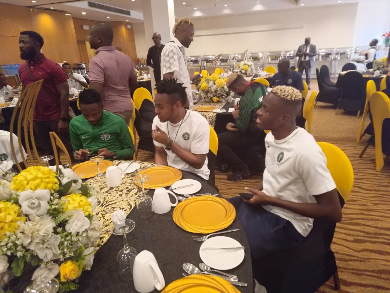 Alex Iwobi, Ahmed Musa, Victor Osimhen, Ola Aina, Frank Onyeka, Calvin Bassey, Ademola Lookman, Kenneth Omeruo, Joe Aribo, and Williams Trost Ekong are currently attending a welcome brunch at the Transcorp Hilton in Abuja.