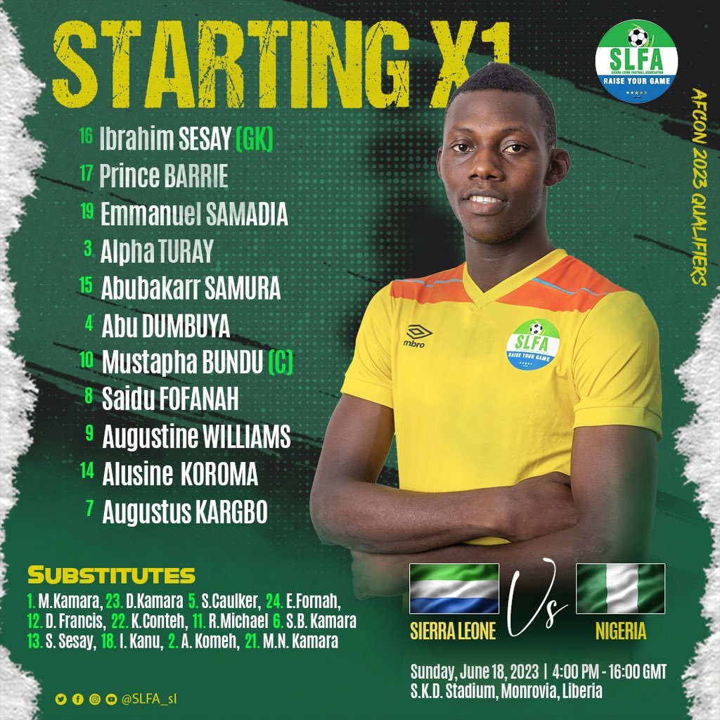 AFCONQ 2023: Sierra Leone vs Nigeria by 5pm – Team News And Line-ups