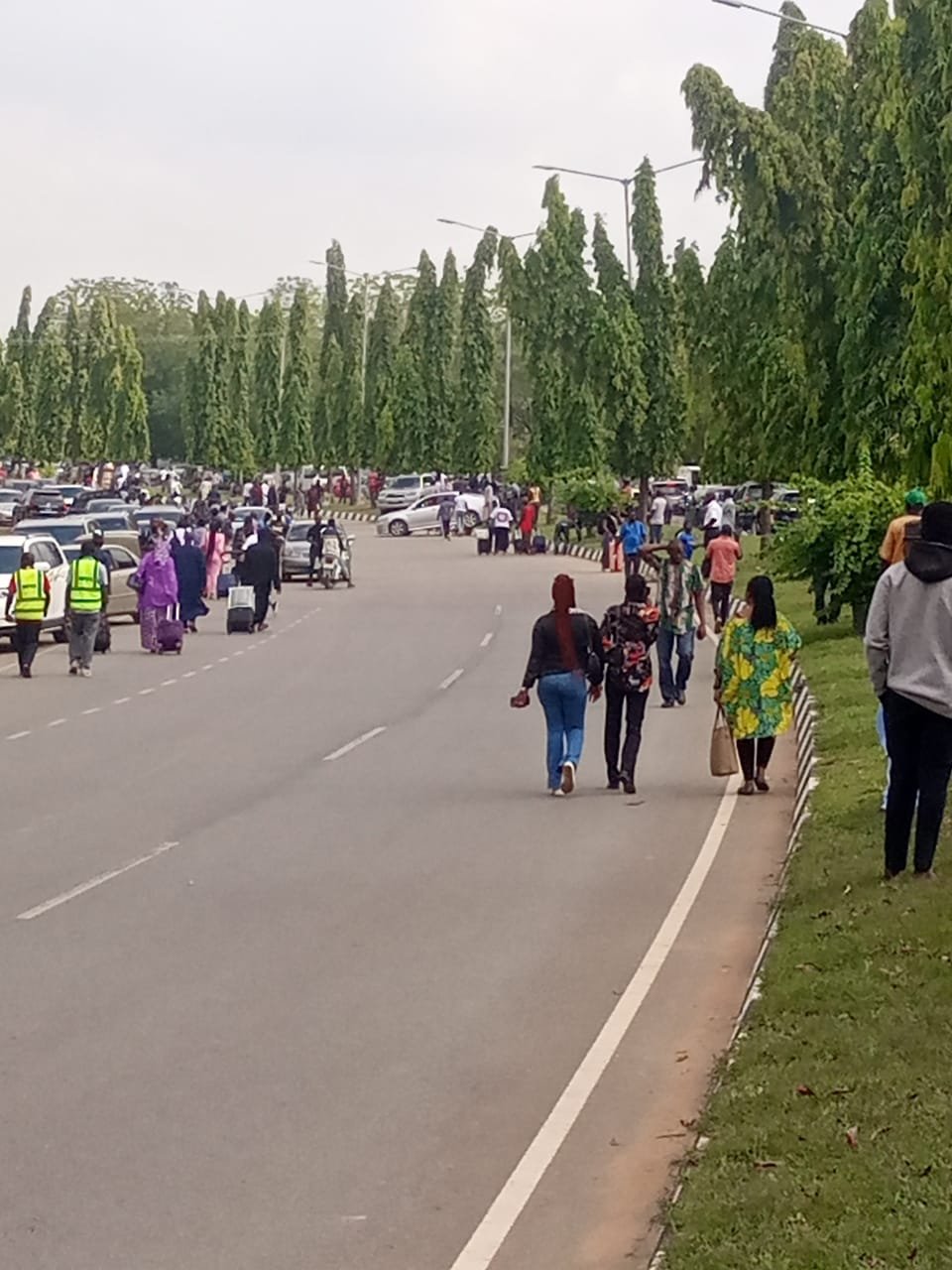 Some travelers journey to catch their flights, while others trek to reach the road that is distant from the airport in order to catch their taxis.