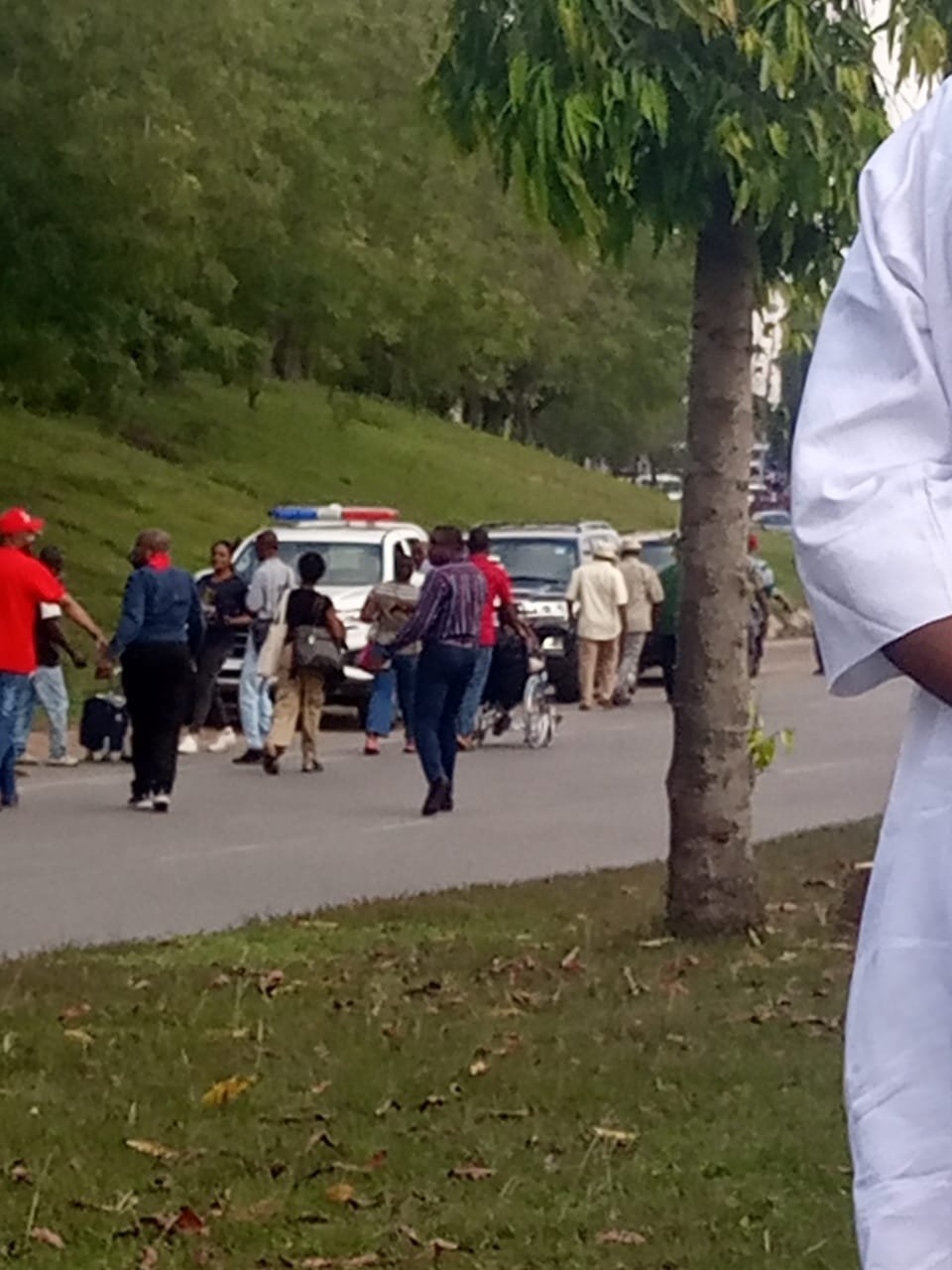 As drivers wait for the demonstration to end, there is heavy traffic on the route to the airport.
