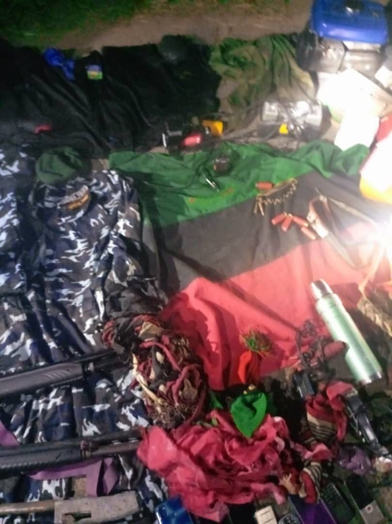 According to the statement, three suspects were apprehended during the operation, and nine cars and three Pump Action pistols, as well as stolen camouflage clothing and a Biafra flag, were confiscated.