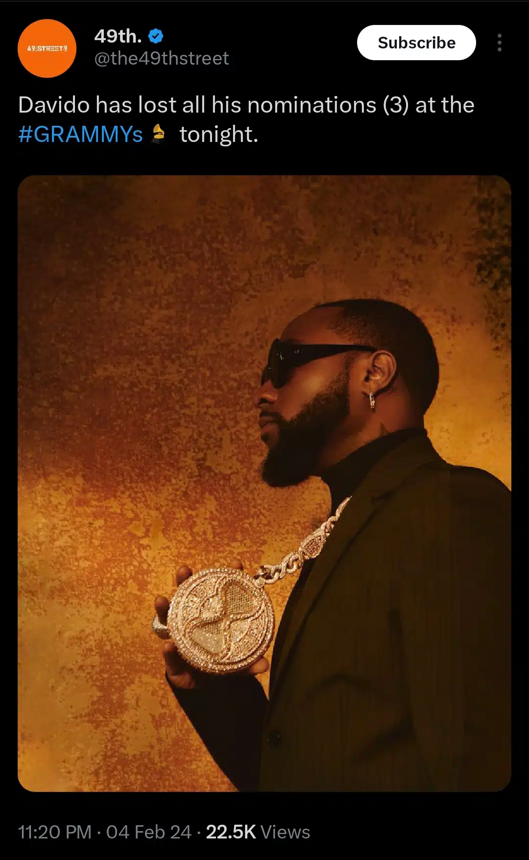 Meanwhile, at the Grammy Awards, which took place today in Los Angeles on February 4, 2024, the singer lost all of his nominations.