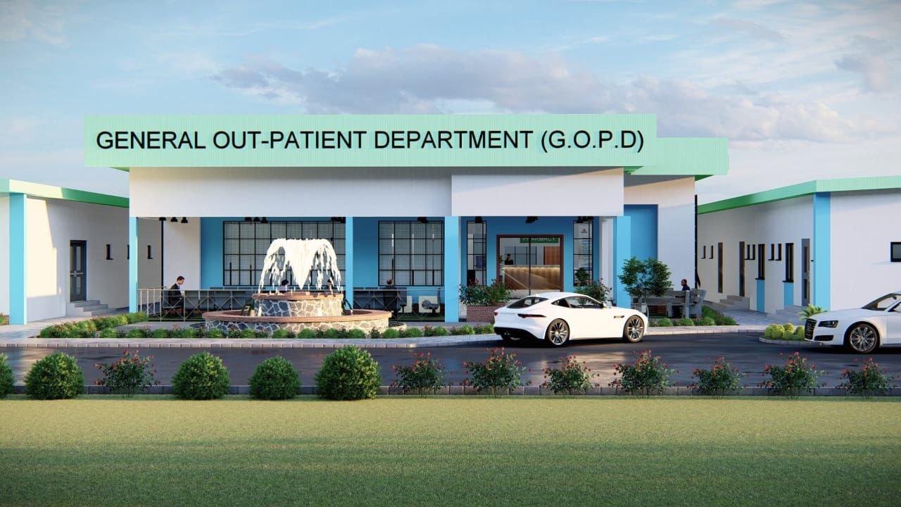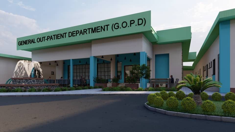 General Outpatient Department (GOPD), patient’s waiting area, Intensive Care Unit, Accident and Emergency Unit, VIP Section, Trauma center, Doctors quarters, cafeteria and completion of retention wall