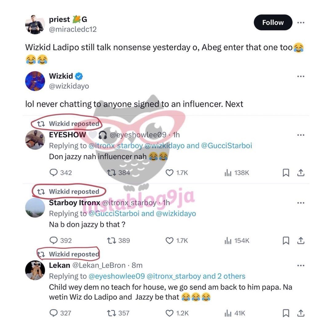 Wizkid allegedly described Don Jazzy as a “influencer” on X formerly know as Twitter.