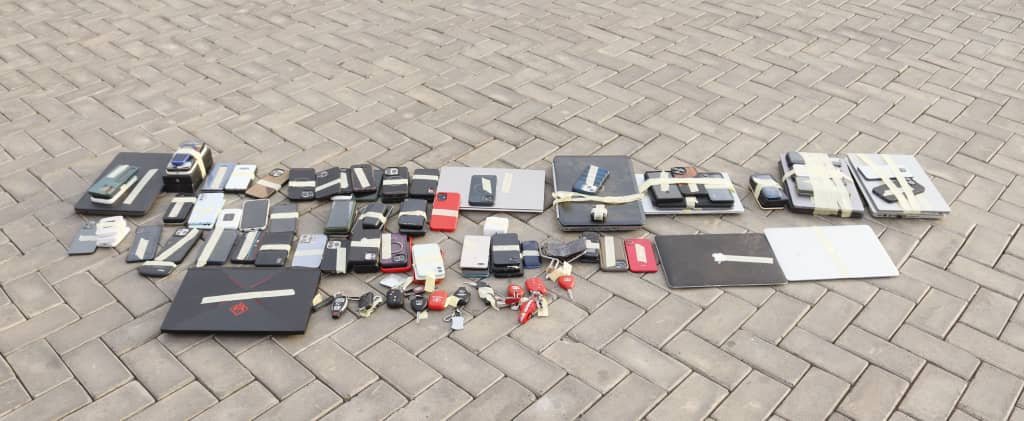 According to a statement signed by the EFCC’s Head of Media and Publicity, Dele Oyewale, items collected from the suspects include ten exotic cars, two motorcycles, eleven laptop computers, 83 mobile phones, and charms.