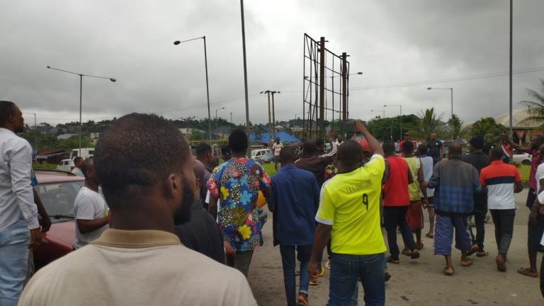 In Calabar, the capital of Cross River State, the event just happened at the roundabout between Akai Effa (MCC Road) and the GoodLuck Ebele Jonathan bypass road.