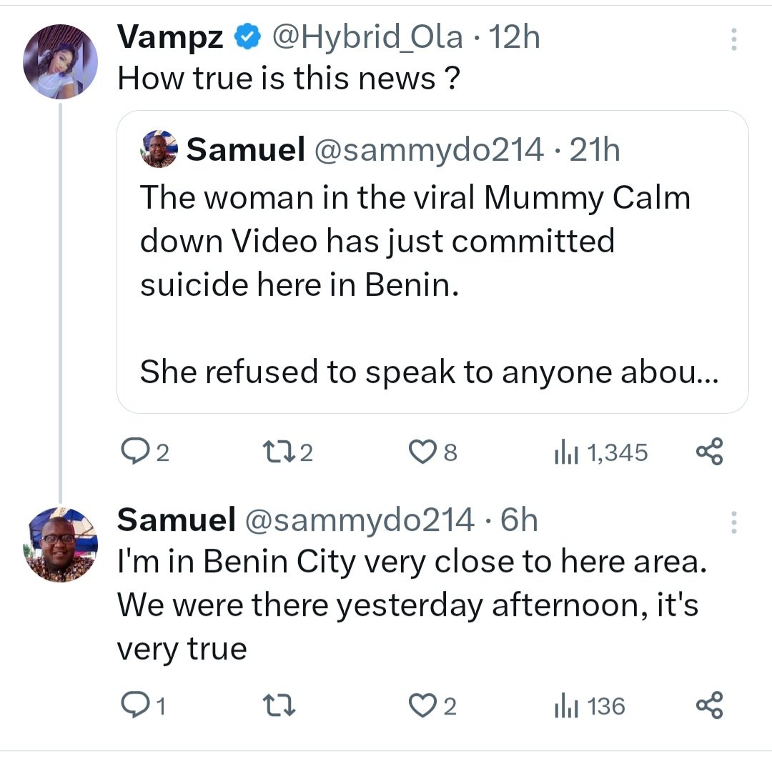 It is said that Toluige Olokoobi Babalola killed herself in Benin City, Edo state, leaving her husband and three kids in the wake.